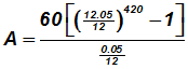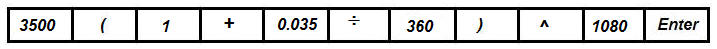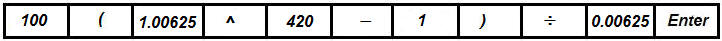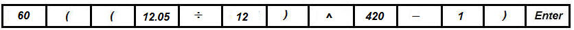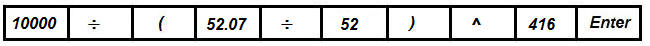 NOTE: We must open two left parenthesis to tell the calculator to raise the fraction to the power of 420. Without the second parenthesis the calculator would have only raised 12 to the 420th power due to the Order of Operation!