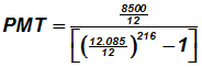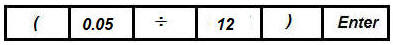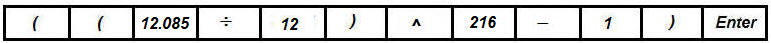 NOTE: We must open two left parenthesis to tell the calculator to raise the fraction to the power of 216. Without the second parenthesis the calculator would have only raised 12 to the 216th power due to the Order of Operation!