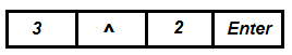 First we type the index 3 and then we press the 2nd button followed by the caret ^ button.