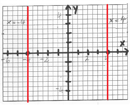 is a vertical line. Notice that there is NO y-value. This means that y can take on any and all real numbers. On the other hand,